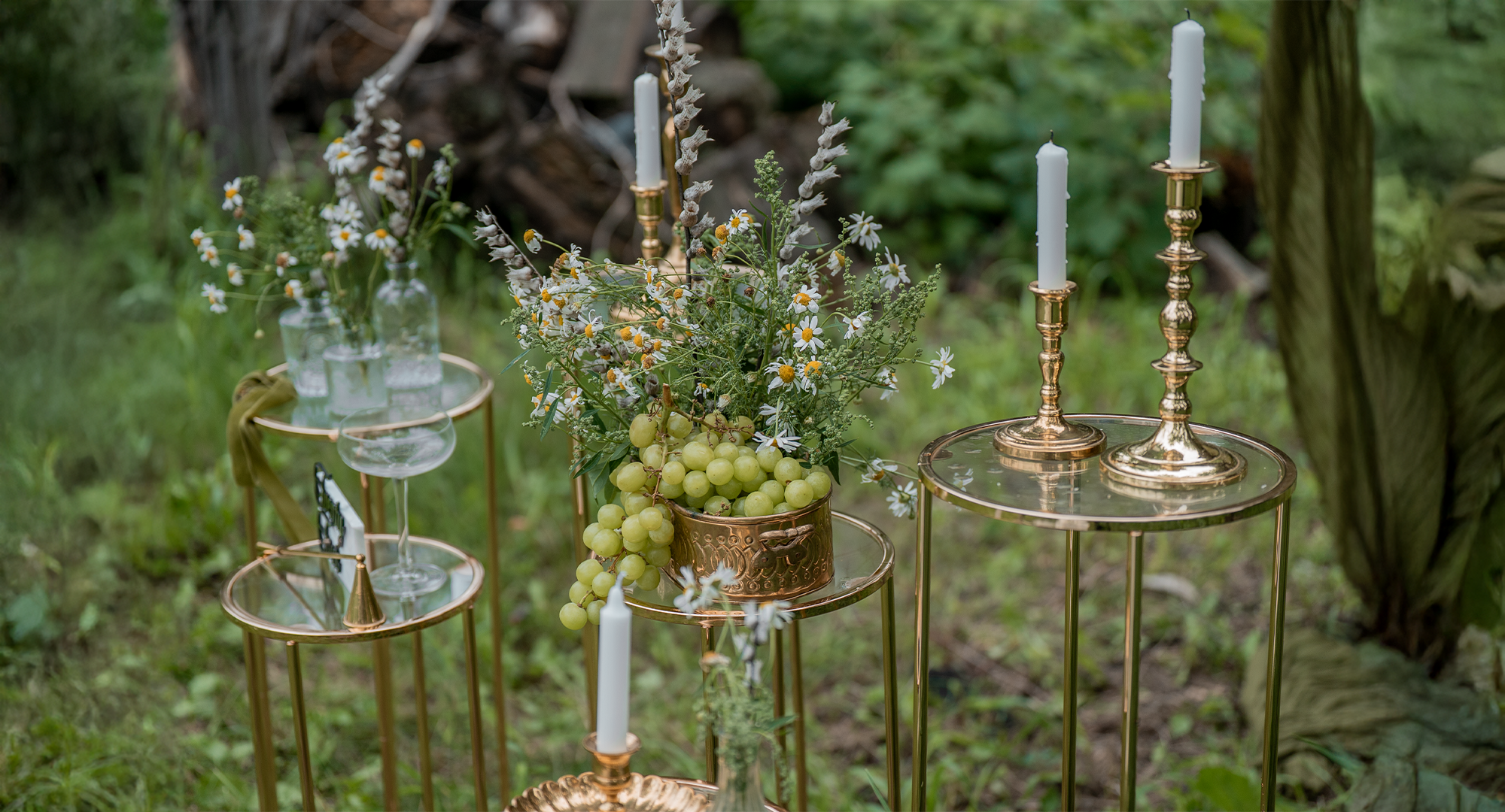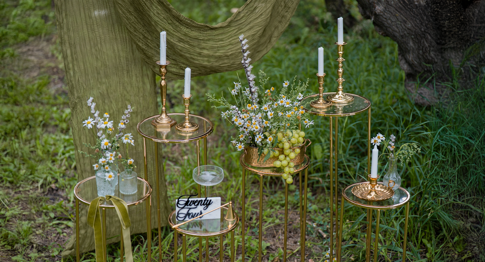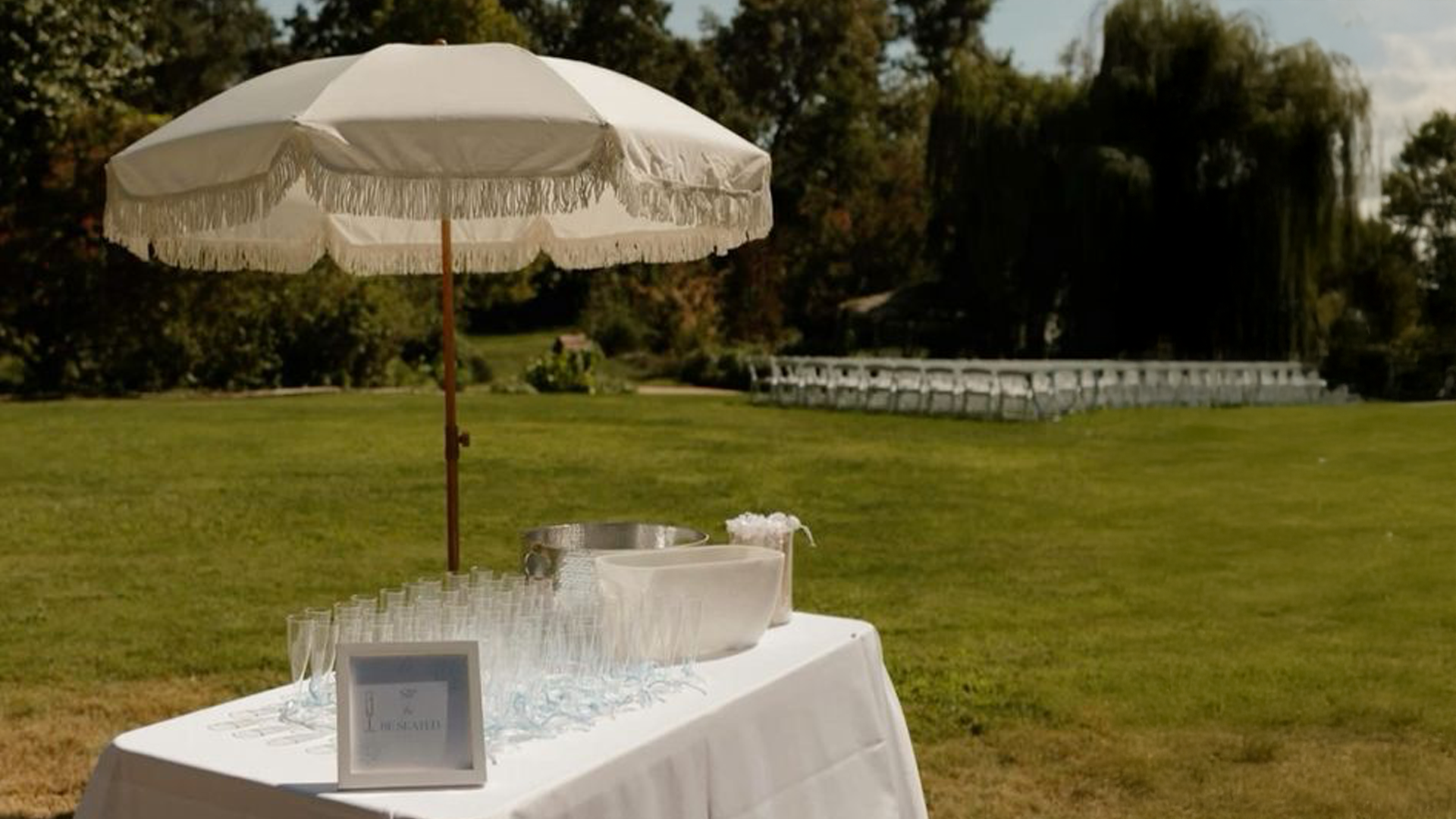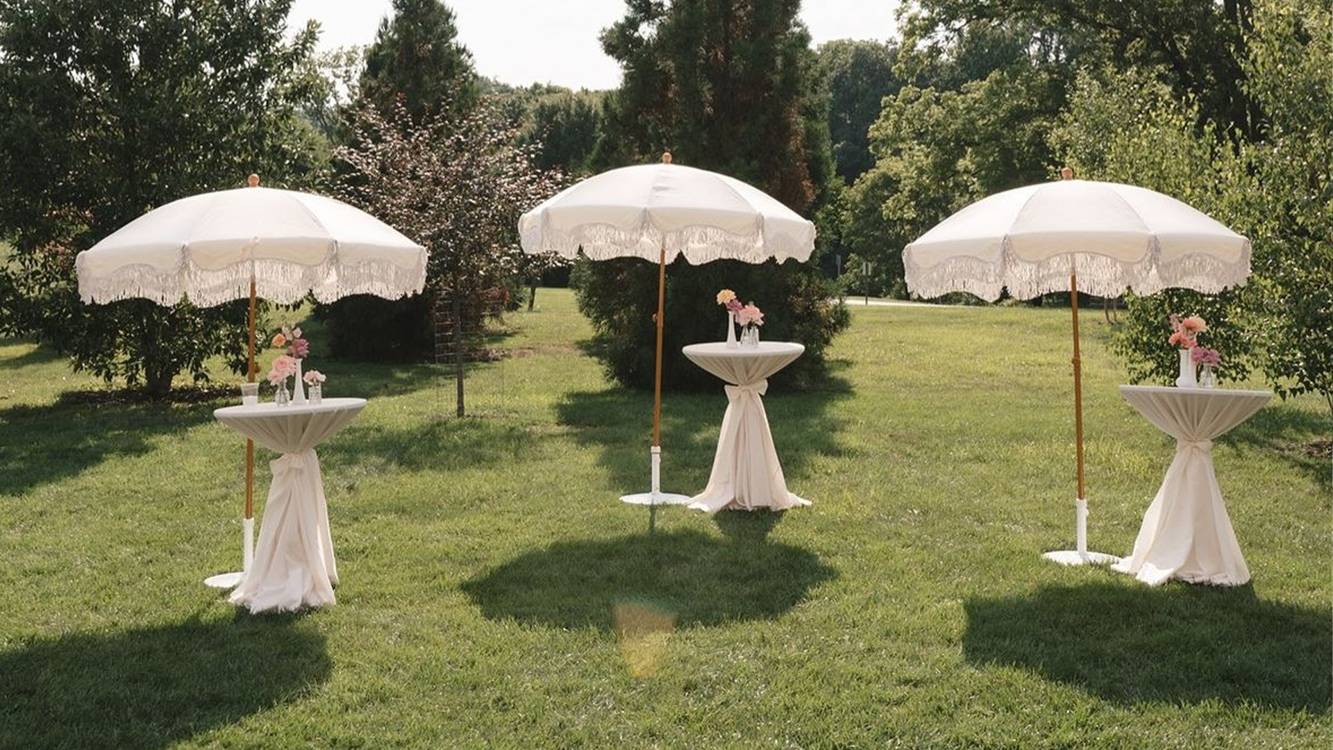 White Fringed Garden Umbrellas & Cast Iron Stand