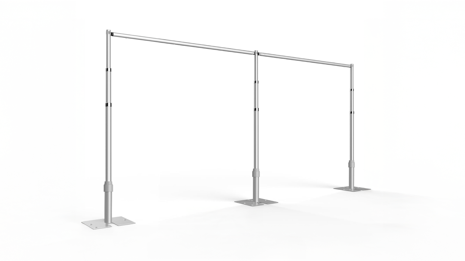 Heavy, adjustable pipe frame that can be extended to 20 feet long and 10 feet tall.